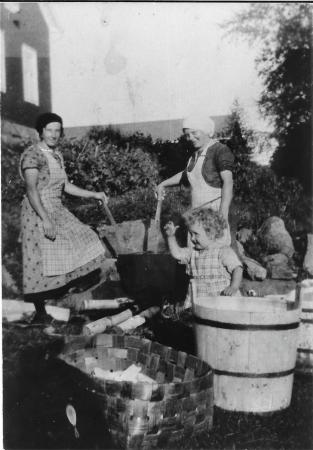 Fr.v Helga Burman, Hjördis Frants och i bunken Anna-Lisa Jakobsson (Casén).