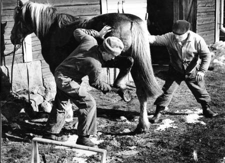 Jordbruk Evald Frants och Hugo Järv skor häst