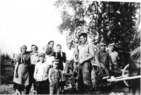 Fr.v: Gun-Britt Frants (Willför), Vivi Burman (Björk), Seidi Burman, Arvid Burman, Berit Stoor (Ek), Robert L Frants, Knut Nygård, Knut Burman, Johannes Nygård. Framför står Lars Burman och Viola Björk (Mitts).