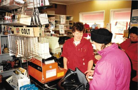 Sista dagen öppet, Barbro Eriksson betjänar Vivi Bertholm och Gladys Matilda M. Burman.
