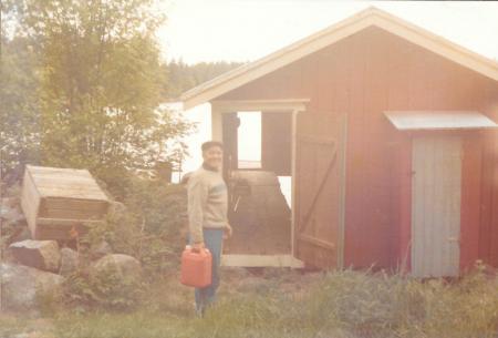 Verner Björk (1924-1986) framför sitt båthus vid Skutplatsen. Huset heter idag "Väänäras".