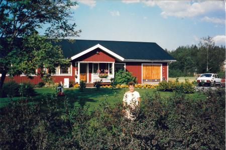 Hus nr. 128 i Kosköboken. Framför huset Gun Burman f. Nyby i Vörå (1958-2017).