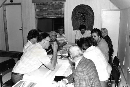Hembygdsforskningsgruppen som startade i medborgarinstitutets regi 1983: Fr.v: Ragnar Sandelin, Gunne Lax, Saga Burman, Margit Krus, Lars Burman, Hellen Burman, Elli Rabb, Alf Burman, Evald Frants.