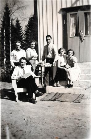 Stående fr.v: Elof Nygård, Sally Burman, Göran Frants. Sittande fr.v: Ragnar Sandelin. Alice Sandelin, Asele Vestergård.