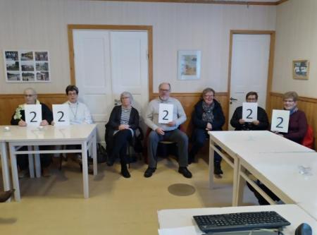 Fr.v: Roy Burman, Siv E Mörk (Österåker), Denice Jern (Vestergård), Matts Jern, Lisbeth Berg (Krus), Iris Håkans (Nygård), Barbro Eriksson (Hinders).