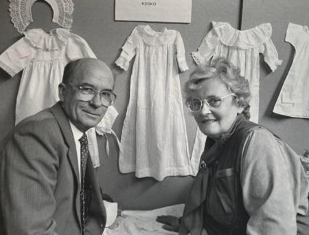 Utställningen "Kvinnors konst" i Koskö samlingshus, ordnad av Lisen Jåfs o. Gunne Lax. Syskonen Jakobsson är födda på folkskolan i Koskö.