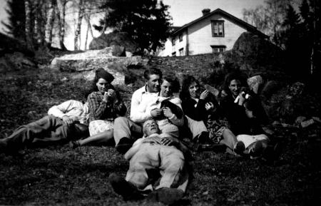 Fr.v: skymd, Emilia Burman (Abrams Miili), Erik Burman, Linnea Frants (g. Eriksson), Vivi Burman (g. Björk), Vivi Bertholm, Felix Burman.