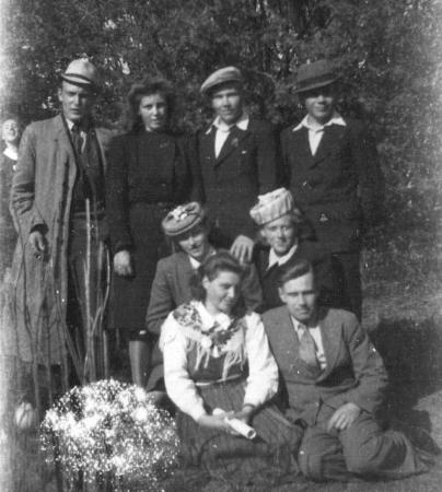 Henrik Ekholm (Sundom), Inga Nygård (g.Ekholm) Torsten Häggblom (Vallvik), okänd, Lenna Nygård)(g.Häggblom).
