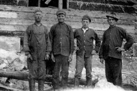 Fr.v; Johannes Burman (Smedin), Valfrid Burman (Smedis Vaalfriid), Evert Burman (Smedis Ievärt) samt John Norrgård (inte Kosköbo).
