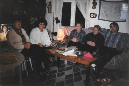 Hos Gunvald. Fr.v: Barbro Eriksson, Karin Snickars, Vera Krus, Kurt Eriksson och Kurt Snickars. Fotografi från Gunvalds fotoalbum.