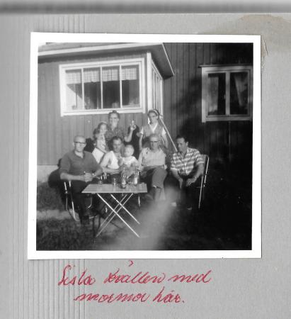 Sittande fr.v: Lennart Snickars, Helge Eriksson med Kristina Eriksson i famnen, Albin Krus.