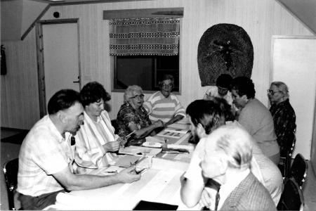 Hembygdsforskningsgruppen som startade i medborgarinstitutets regi 1983: Fr.v: Ragnar Sandelin, Gunne Lax, Saga Burman, Margit Krus, Lars Burman, Hellen Burman, Elli Rabb, Alf Burman, Evald Frants.