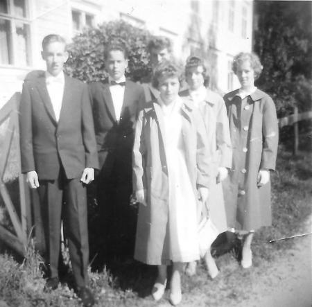 Pojkarna fr.v: Paul Burman, Roy Burman, Per-Erik Snickars. Flickorna fr.v: Iris Nygård (Håkans), Berit Stoor (Ek), Seidi Burman.