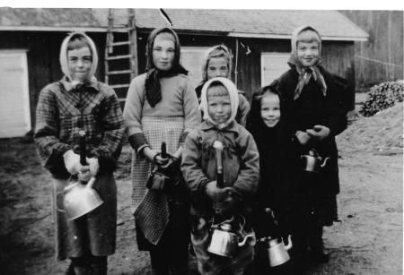 Bakre raden fr.v: Margareta Snickars (Wingren), Alf Burman, Marita Eriksson (Backlund), Lisbeth Krus (Berg). Framför: Sten-Ole Burman och Inga-Lisa Eriksson (Holm).
