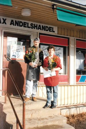 Sisat dagen öppet. På trappan (minns ej namnet) samt Barbro Eriksson.