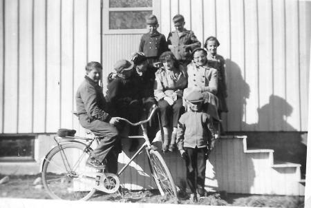 Ungdomar vid Ruunaras hus nr. 52A i Kosköboken) Fr.v: på cykel Harry Burman, Bertel Mård, Helmer Glader, Berit Stoor (Ek), Ann-Marie Mörk (Lundström), Ulla Stoor (Valli).