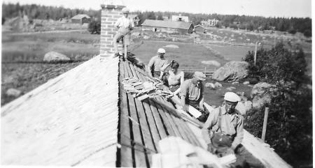 Pärtspikning på skoluthusraden. I bakgrunden bakom rian syns nuvarande Thomas och Linda Österbergs hus.